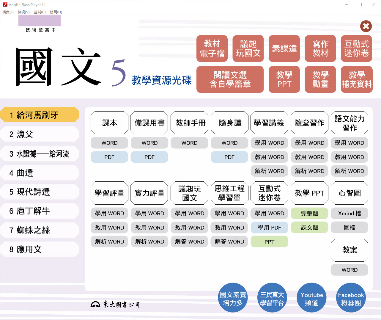 112學年上學期 技術高中 三民東大版 國文科 3年級 教學光碟