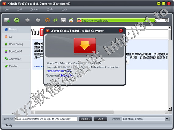 • 4Media YouTube Video Converter v3.0.1.0309 英文正式版(影片下載工具軟體)